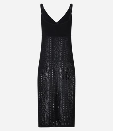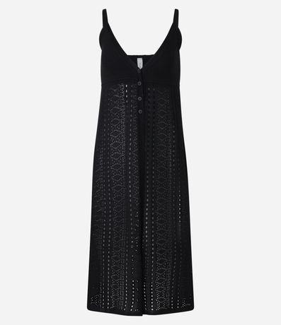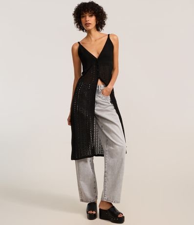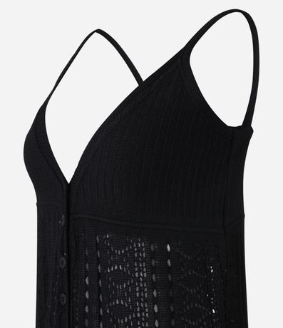 Blusa túnica com alcinha fina, confeccionado em tricô com ponto aberto e produzido através de boas práticas ambientais.