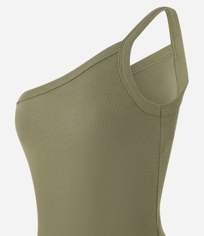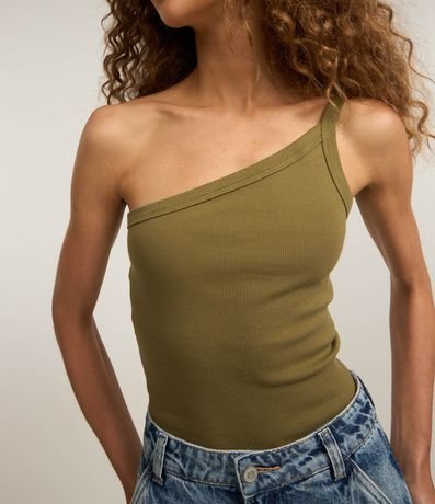Ref: Blusa confeccionada em ribana, decote um ombro só com alça fina e textura leve.