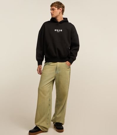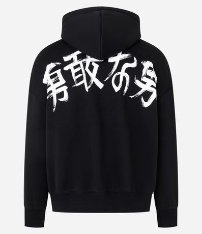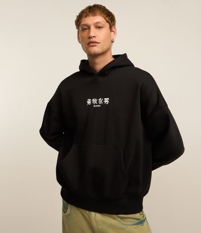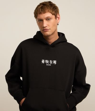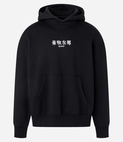 Ref: Blusão masculino em moletom no modelo boxy, com capuz, bolsos e estampa lettering.