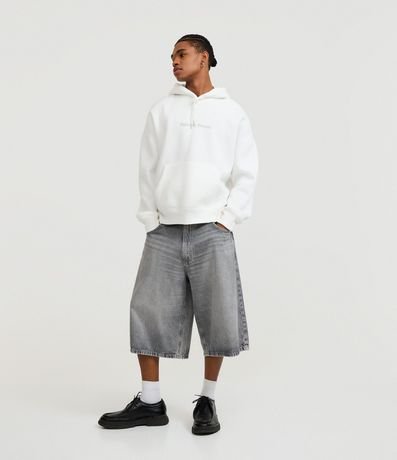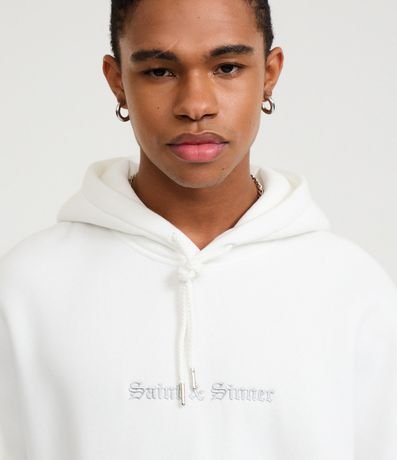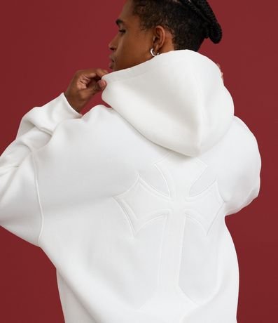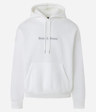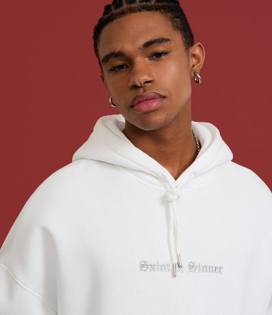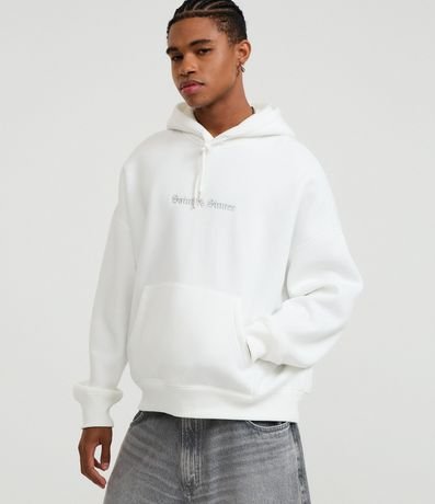 Ref: Blusão masculino em moletom com felpa, modelo boxy com capuz. Possui estampa lettering localizada, bolso canguru e punhos ajustados. Ideal para compor looks urbanos e modernos com conforto e estilo.