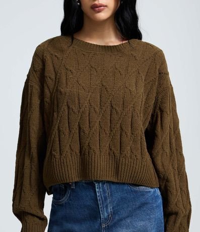 Ref: Blusão em tricô com textura trabalhada e mangas longas, proporcionando conforto e estilo para os dias frios. O caimento soltinho deixa o visual moderno e versátil para diversas combinações. Peça essencial de inverno, confeccionada com fio reciclado que reduz impacto ambiental.