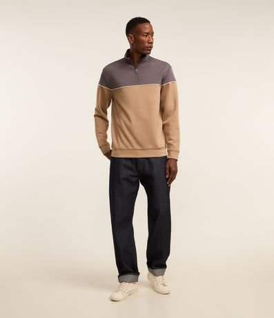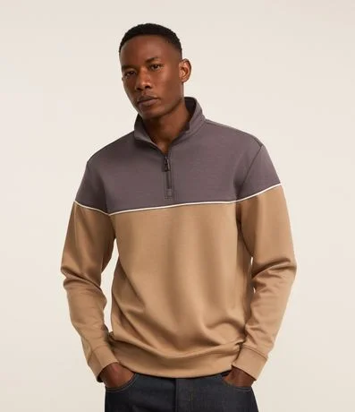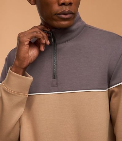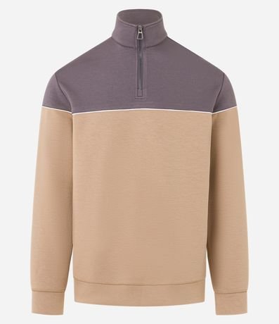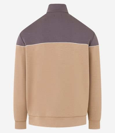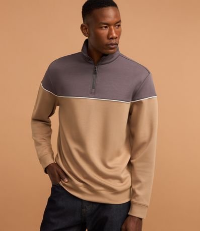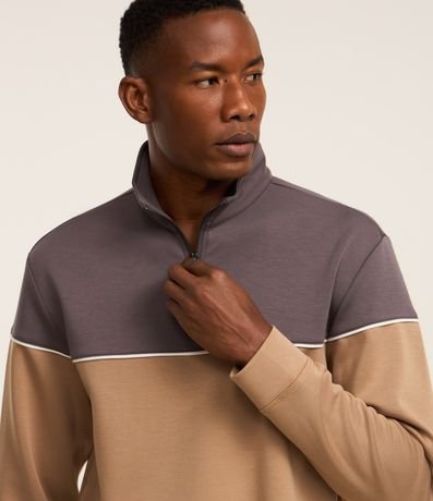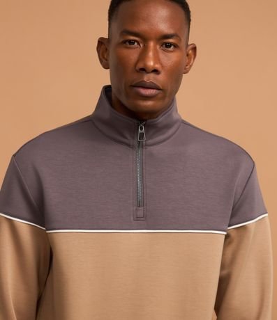 Blusão com Zíper na Gola e Bloco de Cor