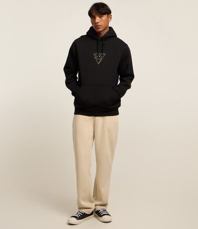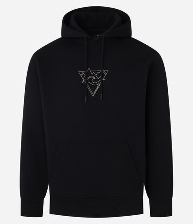 Ref: Blusão masculino confeccionado em moletom com capuz e cordão, manga longa, no modelo comfort com estampa de triângulo.