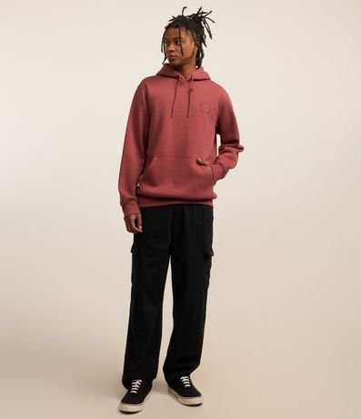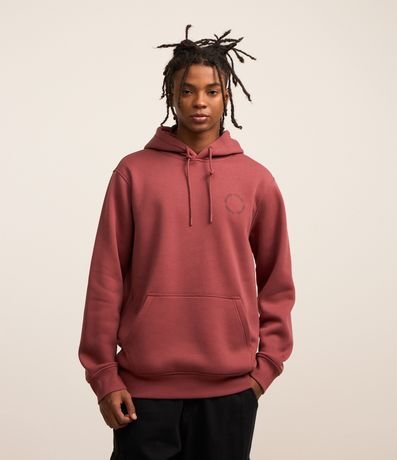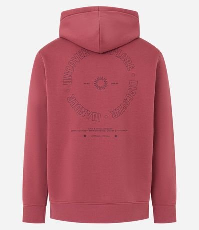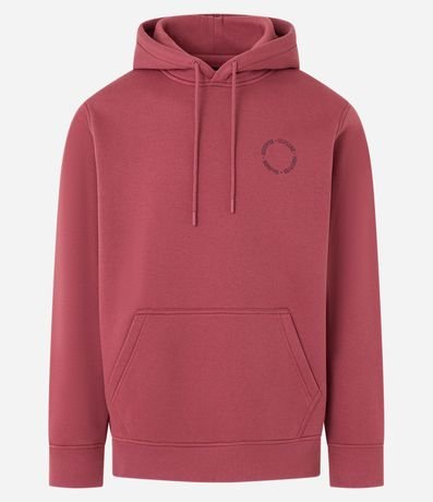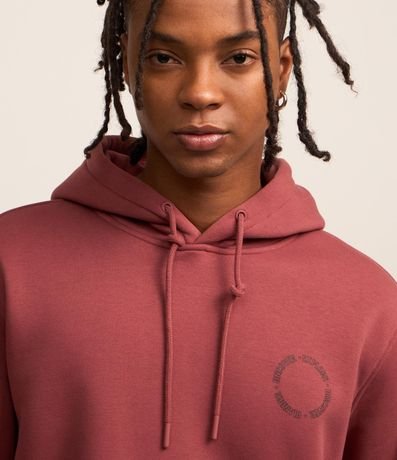 Ref: Blusão masculino confeccionado em moletom, com capuz, cordão para ajustes, bolso e manga longa. Peça no modelo comfort com estampa lettering circular.