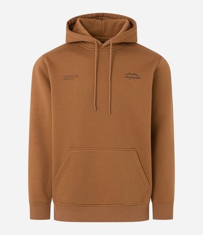 Ref: Blusão masculino confeccionado em moletom mais sustentável, com capuz, cordão para ajustes e bolsos. Peça com manga longa no modelo comfort com estampa lettering.