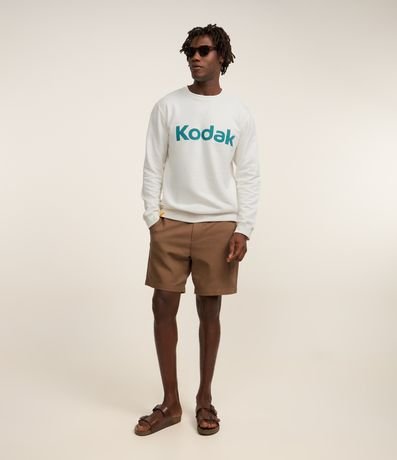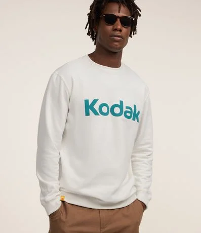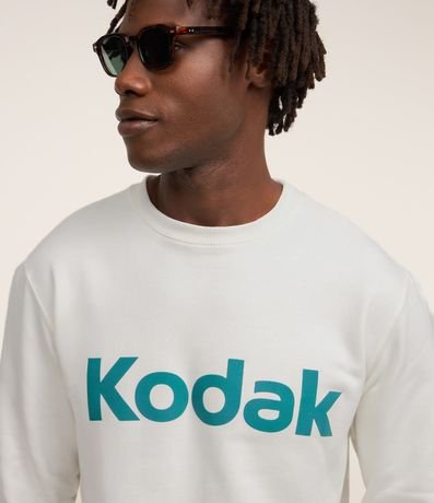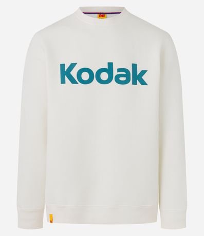 Blusão masculino, com gola redonda e mangas longas. Peça contém estampa frontal da marca Kodak.