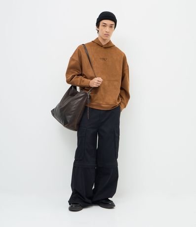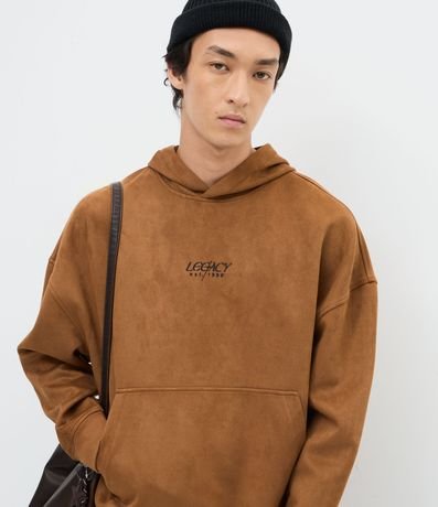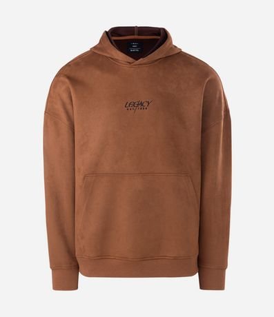 Ref: Blusão masculino fechado, com capuz, suede, bolso canguru e manga longa.