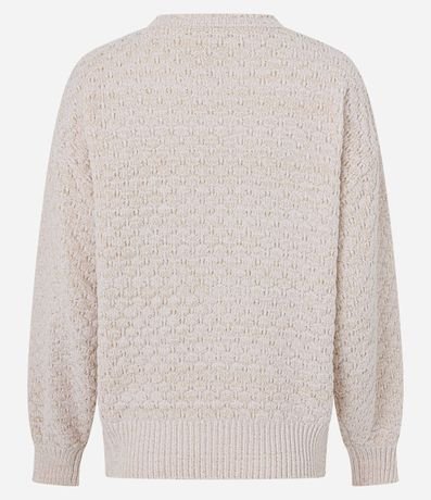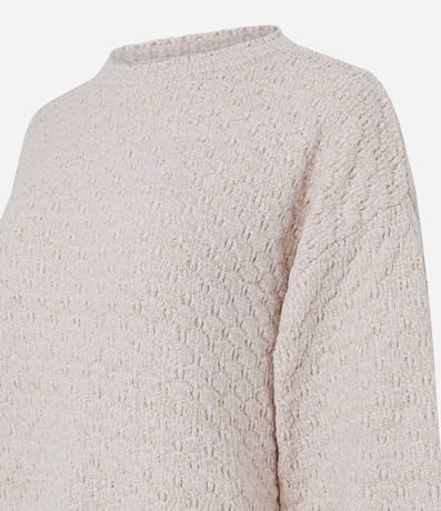 Blusão em tricô chenille com textura macia e caimento confortável. Possui gola redonda e acabamento retilínea na gola e nos punhos, trazendo charme sutil ao visual. Modelagem regular ideal para compor looks de inverno com aconchego e estilo para o dia a dia.