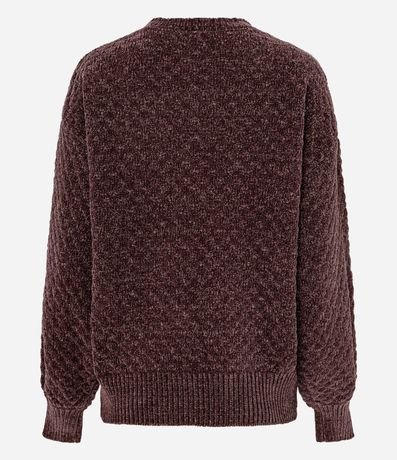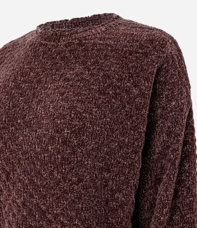 Blusão em tricô chenille com textura macia e caimento confortável. Possui gola redonda e acabamento retilínea na gola e nos punhos, trazendo charme sutil ao visual. Modelagem regular ideal para compor looks de inverno com aconchego e estilo para o dia a dia.