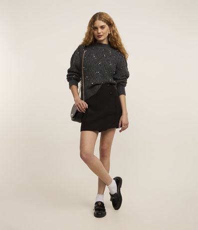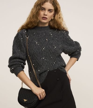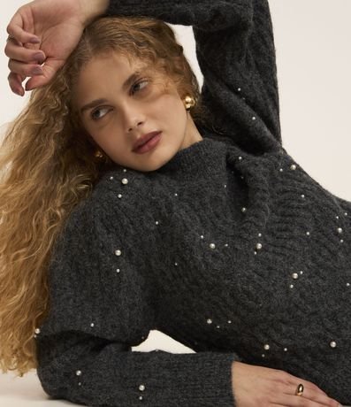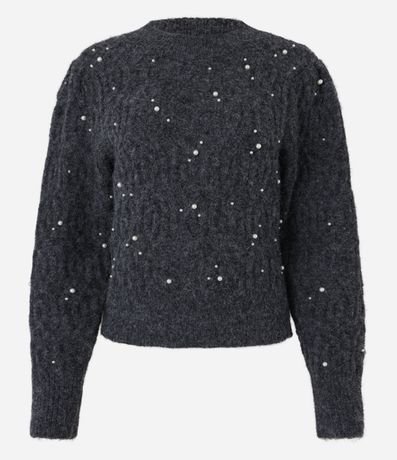 Blusão em Tricô Texturizado com Pérolas