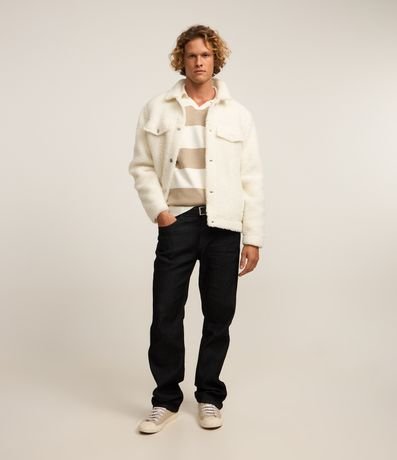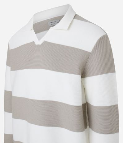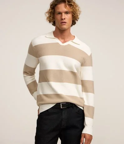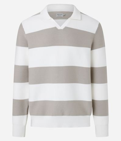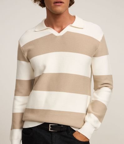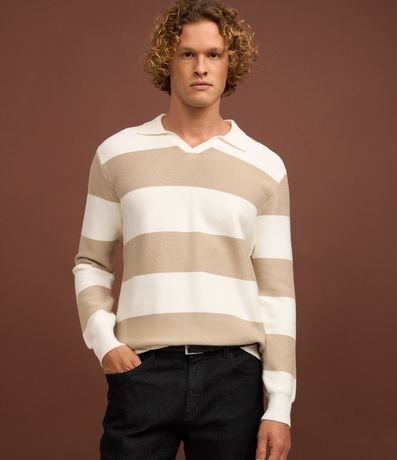 Ref: Blusão masculino em viscose, com gola lapela, mangas longas e estampa listrada contrastante.
