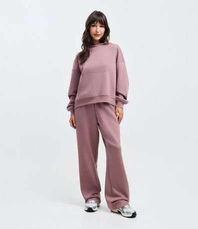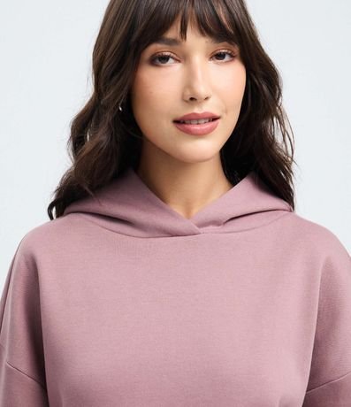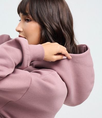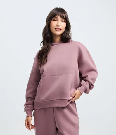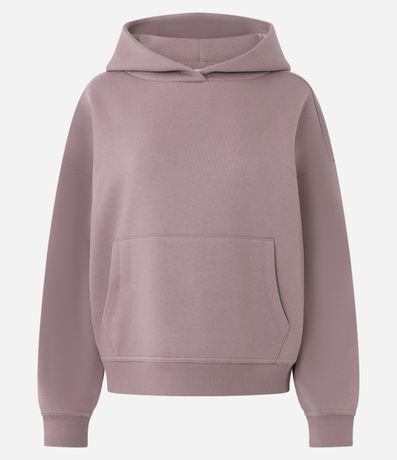 Blusão feminino confeccionado em moletom com felpa mais sustentável. Possui gola com capuz, manga longa, bolso canguru e sem estampa.