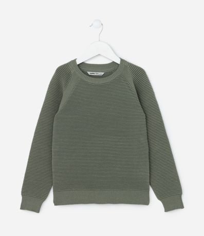 Ref: Blusão infantil confeccionado em algodão, com gola redonda, manga longa e textura canelada. Possui detalhe de cava raglan.