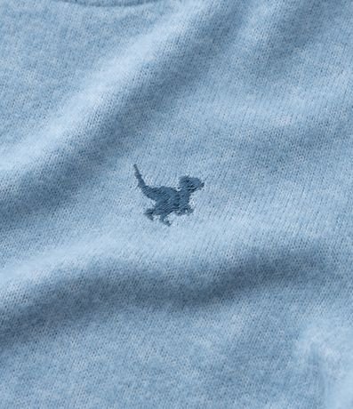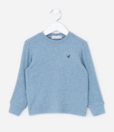 Blusão infantil confeccionado em viscose, com gola redonda, mangas longas e bordado de dinossauro no peito.