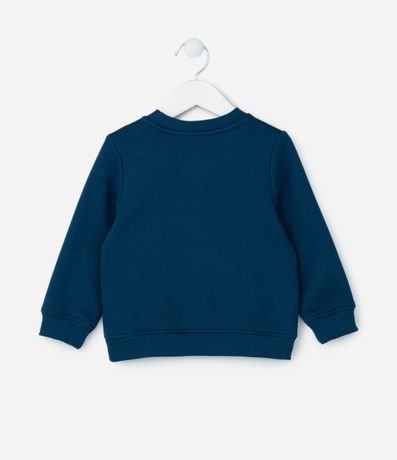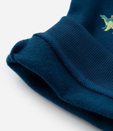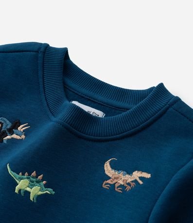 Blusão infantil confeccionado em moletom quentinho, com gola redonda, mangas longas e estampa de dinossauros.