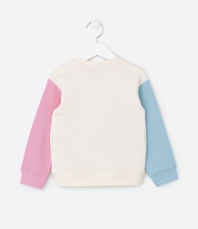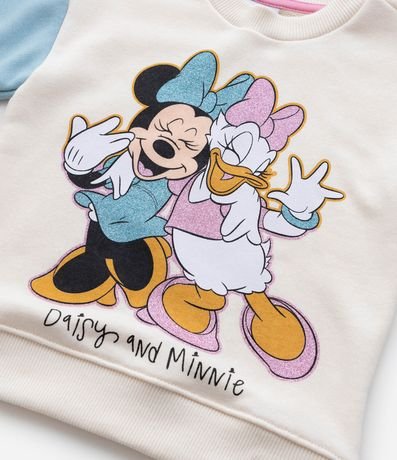 Ref: Blusão infantil confeccionado em moletom sem forro, com gola redonda, mangas longas contrastantes e estampa das amigas Minnie e Margarida, com brilhos!