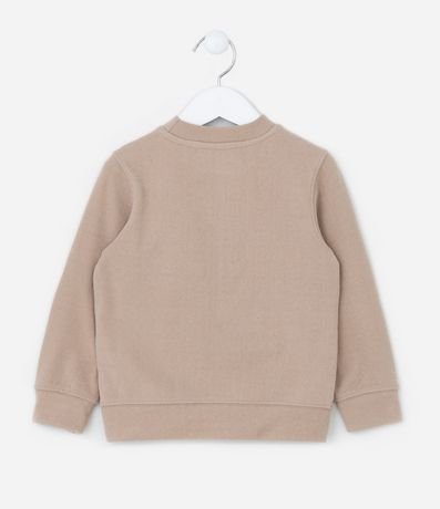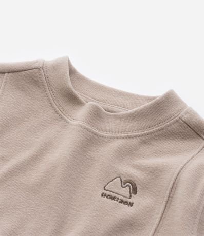 Ref: Blusão infantil confeccionado em microfibra, com gola redonda, mangas longas, frisos frontais e bordado no peito de montanhas com lettering "Horizon".