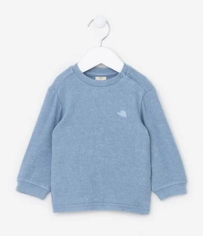 Blusão Infantil em Tricô com Efeito Flanelado e Bordado de Dino - Tam 0 a 18 Meses