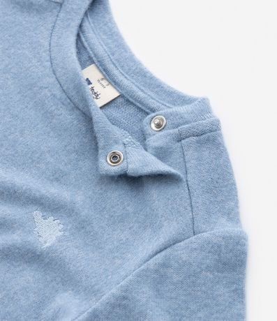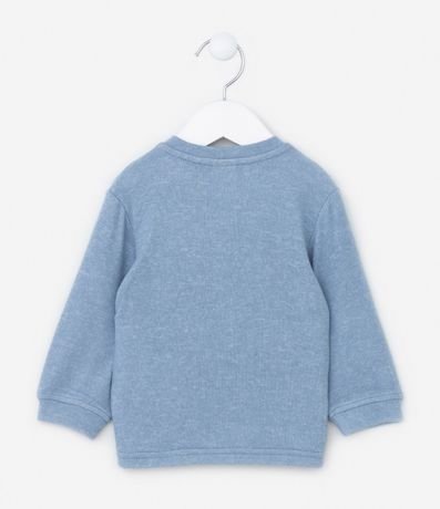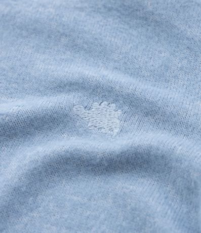 Blusão infantil em tricô com efeito flanelado, manga longa, bordadinho de dino no peito e botão na lateral.
