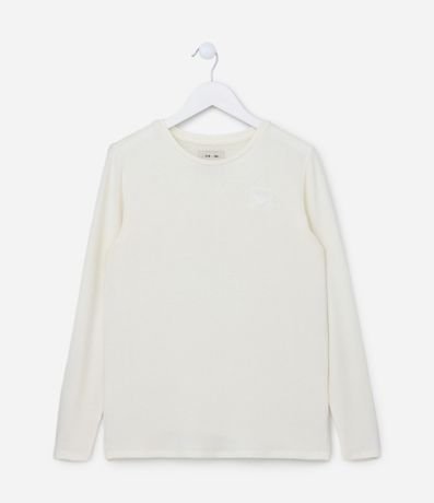 Blusão infantil com gola redonda, manga longa e sem estampa.