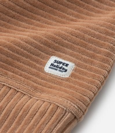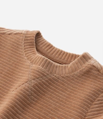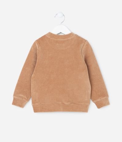 Blusão infantil confeccionado em veludo cotelê, com gola redonda, manga longa e textura canelada. Possui detalhe na gola de "X". Peça super charmosa!