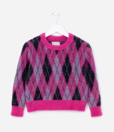 Ref: Blusão infantil peludinho com estampa geométrica.