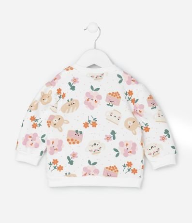Blusão de moletom com felpa, confeccionado em algodão mais sustentável e estampado de bichinhos. A peça tem gola redonda com botões de pressão, mangas longas e barra ajustada.