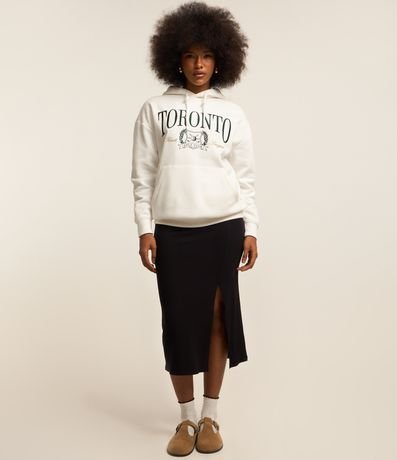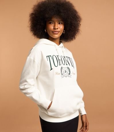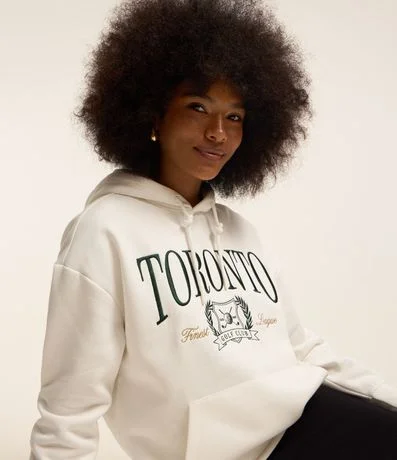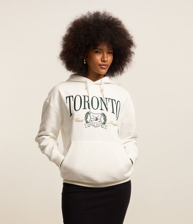 Ref: Blusão fechado com capuz e cordão na gola, confeccionado em moletom com forro em fleece, bordado em lettering Toronto no peito e bolso canguru.