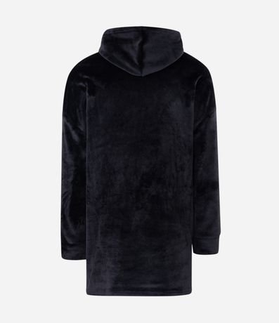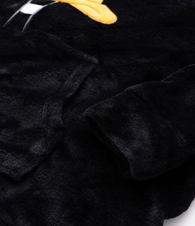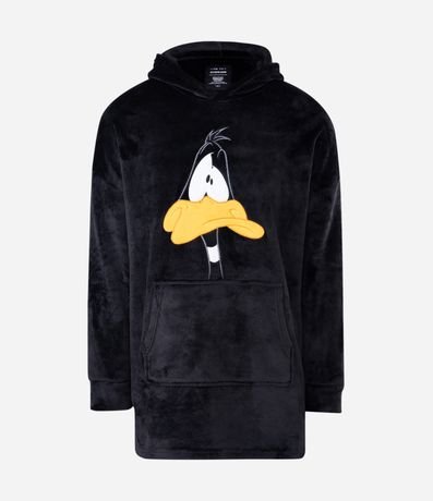 Ref: Blusão oversized fechado, com capuz, bolso canguru e estampa do Patolino.