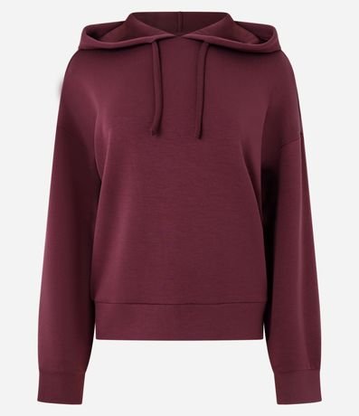 Blusão oversized feminino confeccionado em poliéster certificado. Possui modelo com mangas longas, punhos ajustados e capuz com amarração.