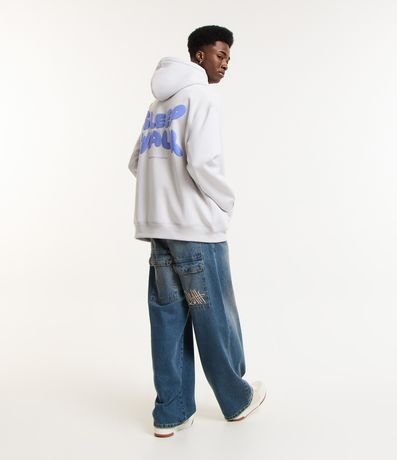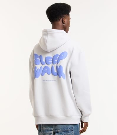 Ref: Blusão masculino confeccionado em moletom, com capaz, bolsos canguru. Peça no modelo relaxed com estampa com lettering com as palavras sleep walk.