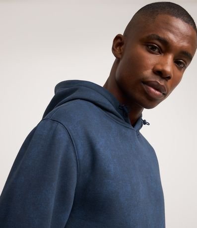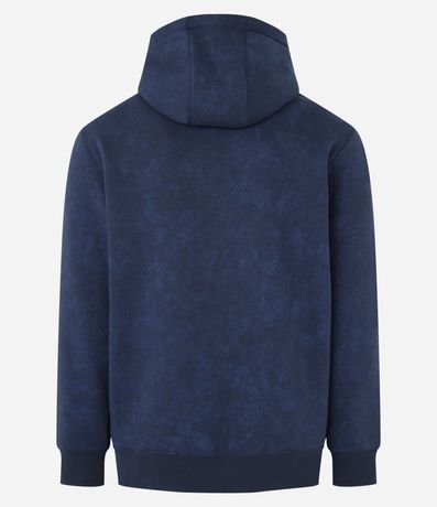Blusão masculino esportivo, capuz com regulador, manga longa com ajustes, detalhe de recortes, barra ajustado, estampa manchadinha.