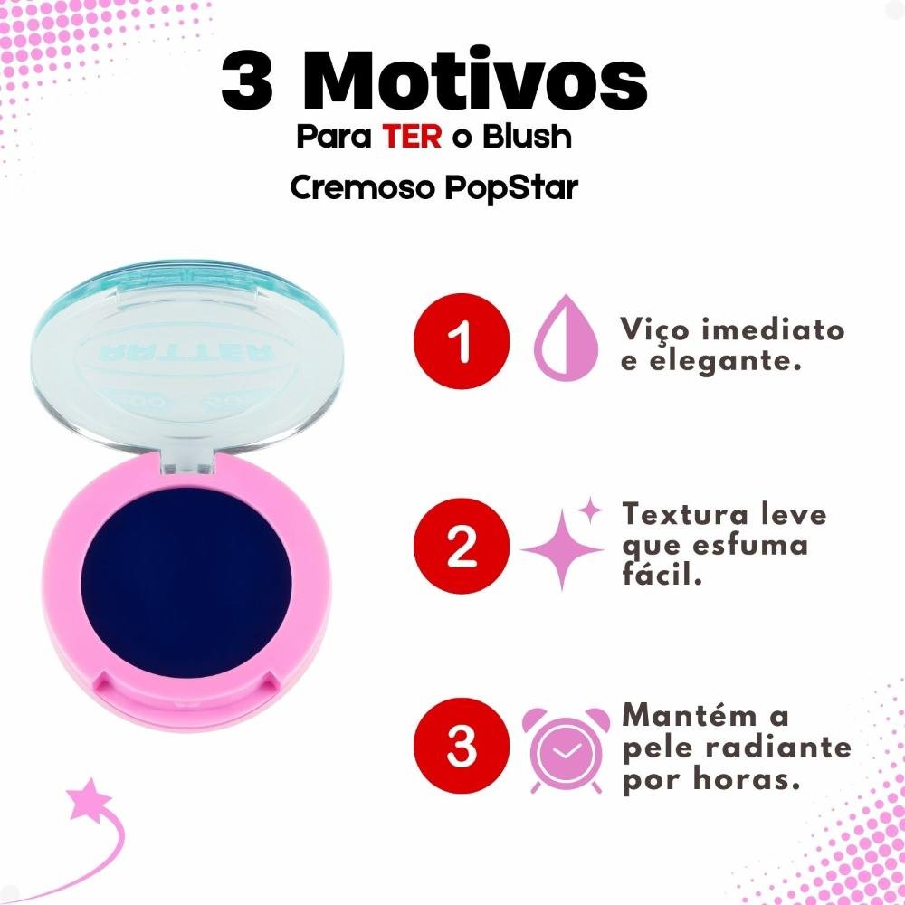 Com sua fórmula inovadora, o Blush Cremoso Popstar Fame é a solução para um visual fresco e saudável em qualquer ocasião, proporcionando um aspecto jovial e cheio de vida.