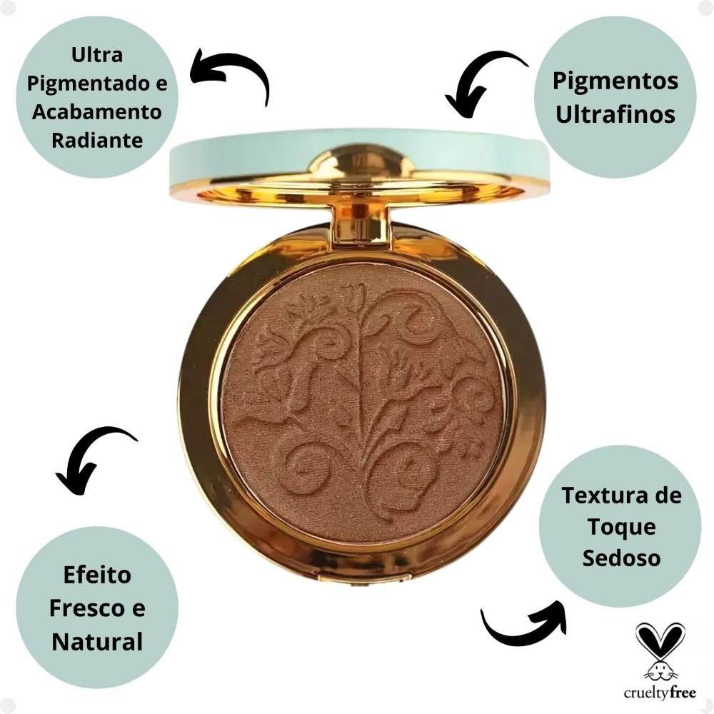 Com o auxílio de um pincel, aplique nas regiões mais salientes do rosto, como alto das maçãs, têmporas, ponta do nariz e centro da testa até obter a intensidade desejada.