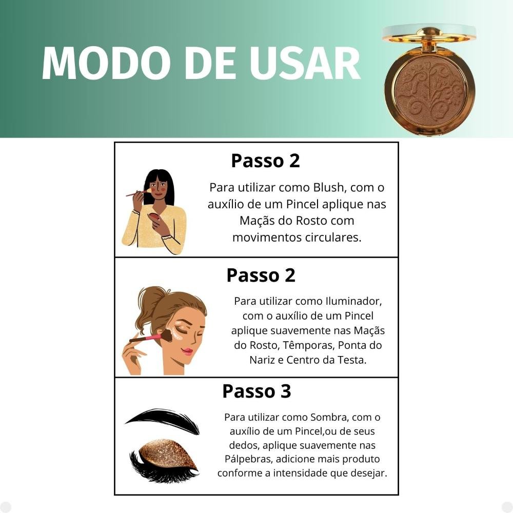 O que é o produto Blush, Iluminador e Sombra Compacto 3x1? É um produto multifuncional que combina blush, iluminador e sombra em um único compacto. Ele foi desenvolvido para quem busca praticidade, pois permite a aplicação de três tipos de maquiagem diferentes com apenas um produto.