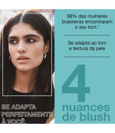 O Blush permanece com a mesma fórmula, apenas com a carinha diferente, mais moderna e compacta, se adaptando as necessidades da mulher brasileira. É recomendado para consumidora que deseja ter um Blush extremamente pigmentado e sem oleosidade! Além disso traz uma leve cobertura de efeito natural e não resseca a pele!