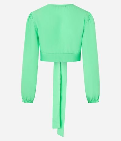 Blusinha Cropped em Crepe com Decote V e Laço na Cintura