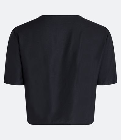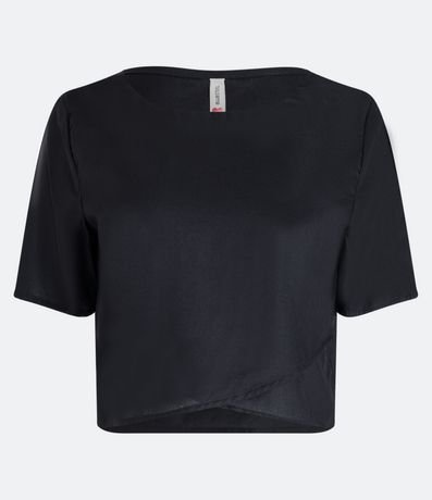 Blusa curtinha em viscose com mangas curtas e barra assimétrica.