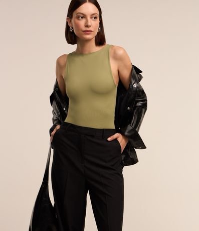 Body básico em poliamida, com gola redonda, sem mangas e sem estampa.