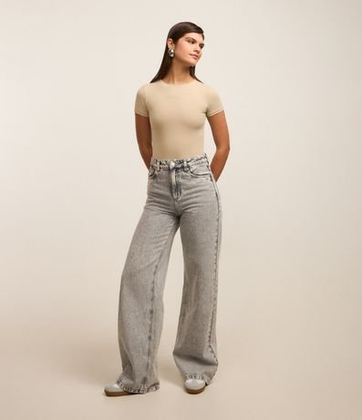 Body feminino confeccionado em malha de poliamida, com gola redonda e mangas curtas. O modelo não possui estampa e conta com fechamento entrepernas.