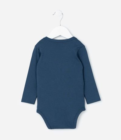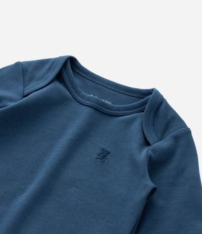 Body infantil para bebês, confeccionado em algodão peruano, com gola redonda americana e mangas longas. Possui mangas longas e fechamento entrepernas.