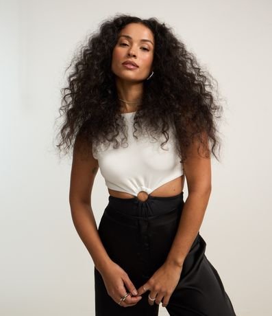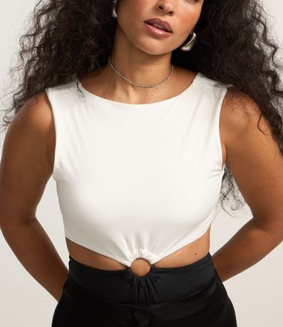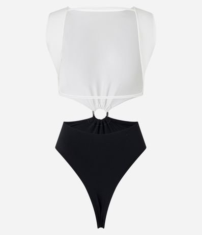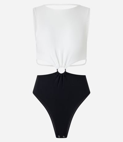 Body Bicolor em Malha com Argola Frontal e Costas Abertas