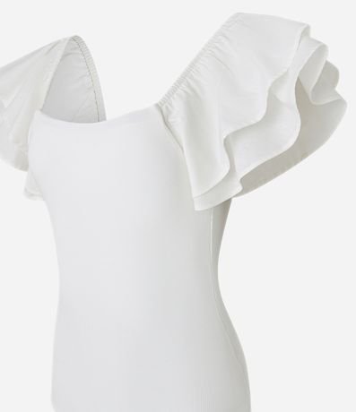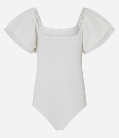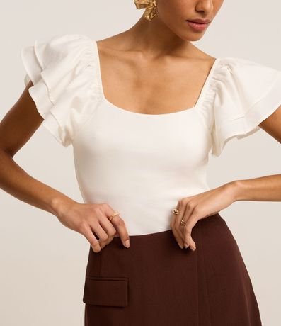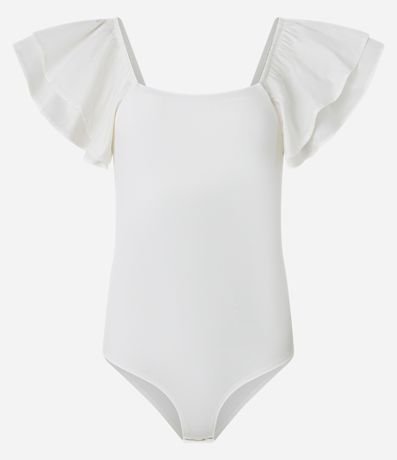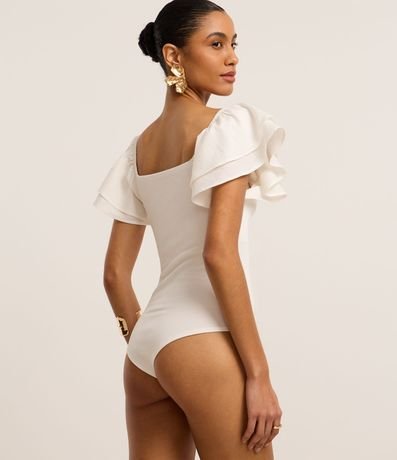 Ref: Body de mangas curtas com babados sobrepostos, confeccionado em ribana, com decote quadrado e fechamento entreperna. Peça com textura cancelada. Este produto possui viscose certificada em sua composição, sendo ambientalmente mais responsável.
