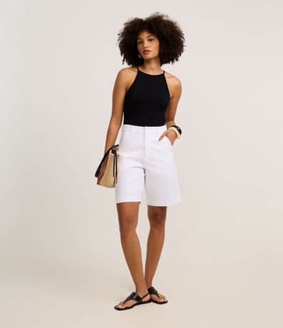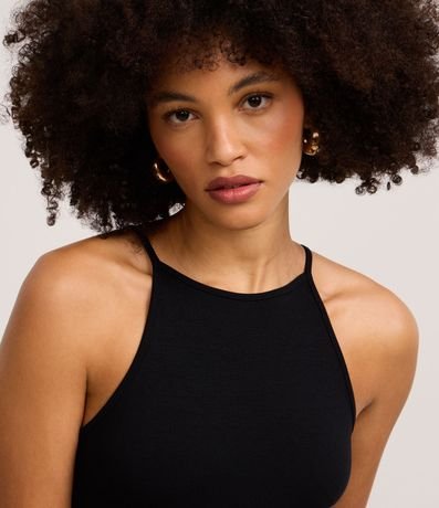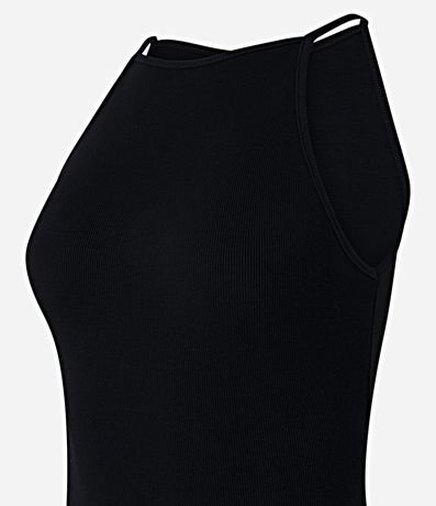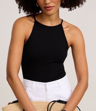 Body sem mangas, confeccionado em ribana, com decote reto e textura canelado. Este produto possui viscose certificada em sua composição, sendo ambientalmente mais responsável.