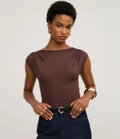 Ref: Body feminino confeccionado em poliamida. Possui decote canoa, que valoriza a região dos ombros e colo, sem mangas, detalhes drapeados e uma modelagem slim fit.