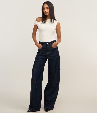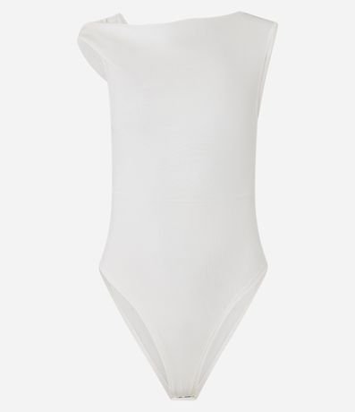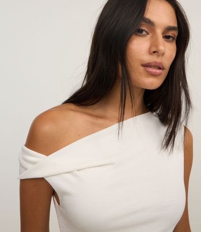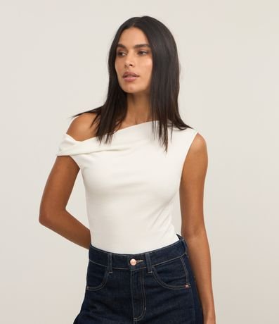 Body decote canoa com detalhe torcido na manga e alça larga.