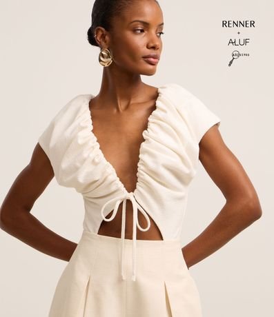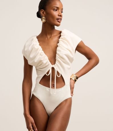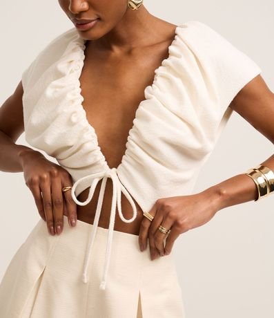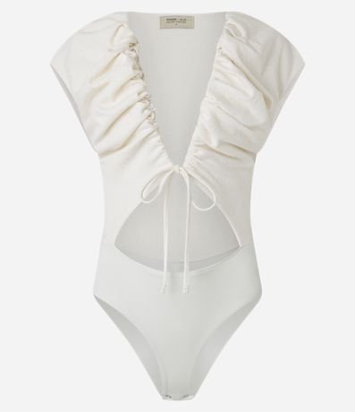 Body com Franzido Decote Profundo e Vazado