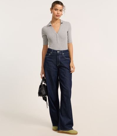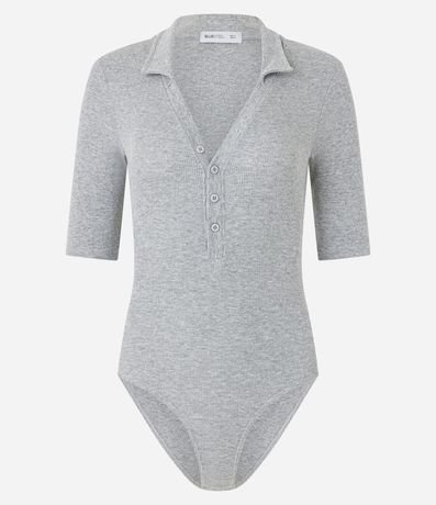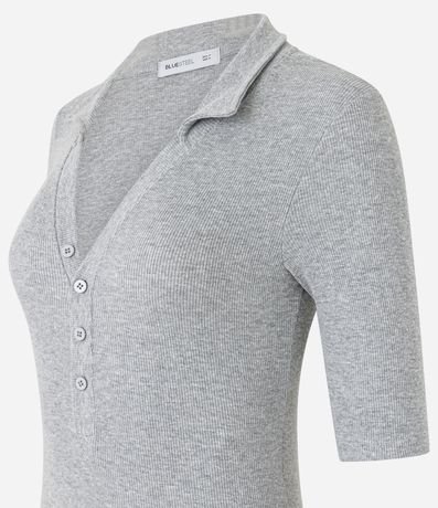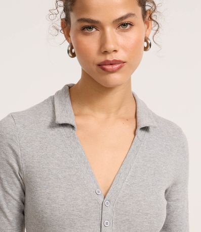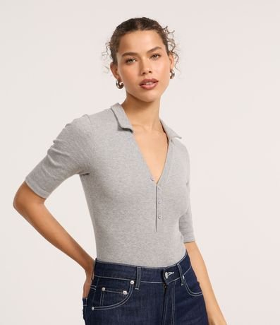 Ref: Body feminino confeccionado em Ribana de algodão mais sustentável com boas práticas ambientais. Peça com gola polo, abotoamento frontal e manga longa.
