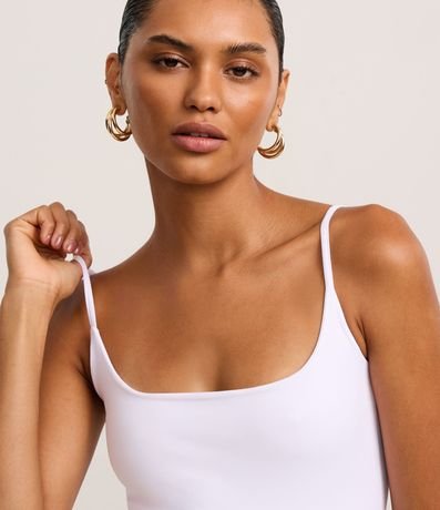 Body sem mangas, confeccionado em microfibra, com alças finas e fechamento entreperna. Peça com forro. Este produto foi fabricado através de processos mais sustentáveis, sendo ambientalmente mais responsável.