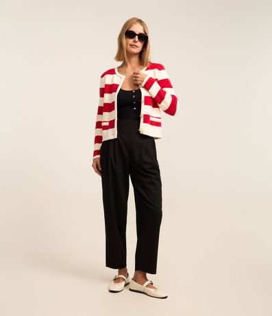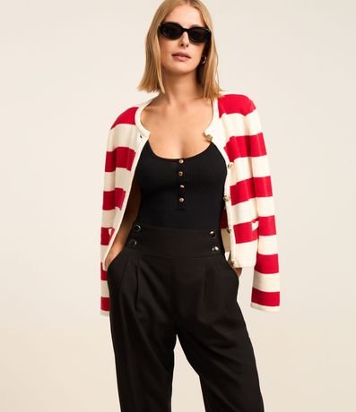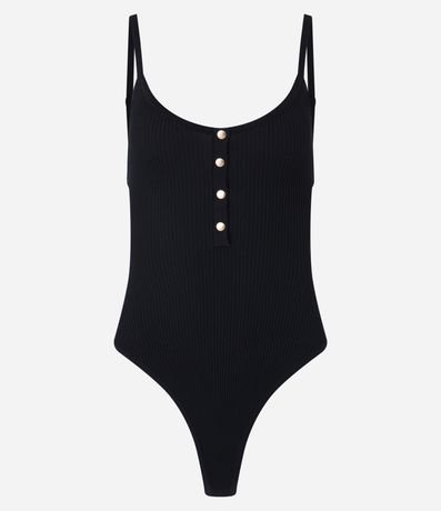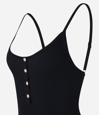 Body de Alça em Tricô Canelado com Botões Metalizados